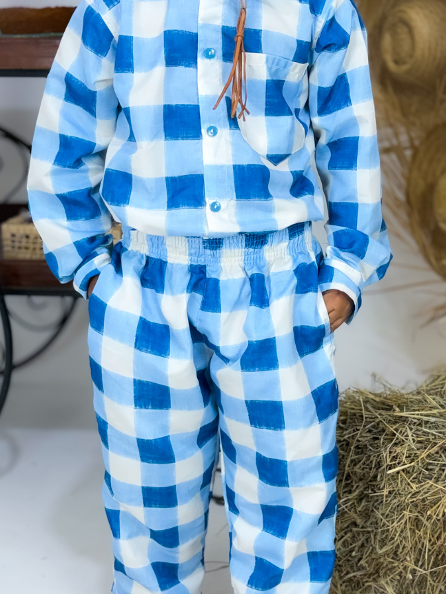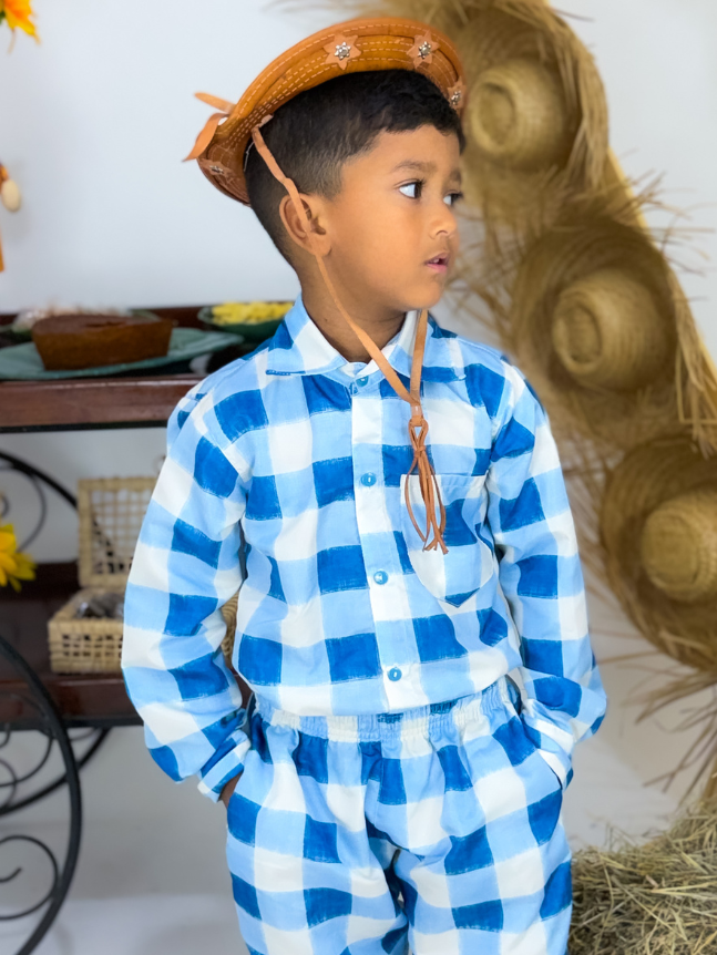 O conjunto masculino infantil junino é perfeito para compor looks tradicionais com muito charme e conforto. O modelo traz um visual típico das festas juninas, com acabamento cuidadoso e detalhes que valorizam a proposta temática.