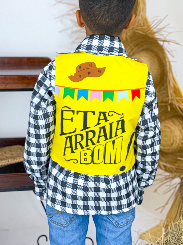 O colete masculino infantil junino é perfeito para compor looks tradicionais com muito charme e conforto. O modelo traz um visual típico das festas juninas, com acabamento cuidadoso e detalhes que valorizam a proposta temática, acrescentando um toque especial e estiloso à produção. É uma peça leve, prática e versátil, ideal para complementar o traje dos pequenos nas comemorações típicas.