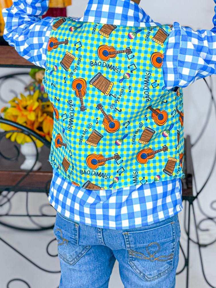 O colete masculino infantil junino é perfeito para compor looks tradicionais com muito charme e conforto. O modelo traz um visual típico das festas juninas, com acabamento cuidadoso e detalhes que valorizam a proposta temática, acrescentando um toque especial e estiloso à produção. É uma peça leve, prática e versátil, ideal para complementar o traje dos pequenos nas comemorações típicas.