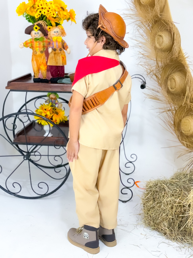 O conjunto masculino infantil junino é perfeito para compor looks tradicionais com muito charme e conforto. O modelo traz um visual típico das festas juninas, com acabamento cuidadoso e detalhes que valorizam a proposta temática.