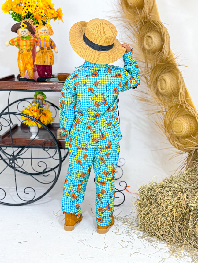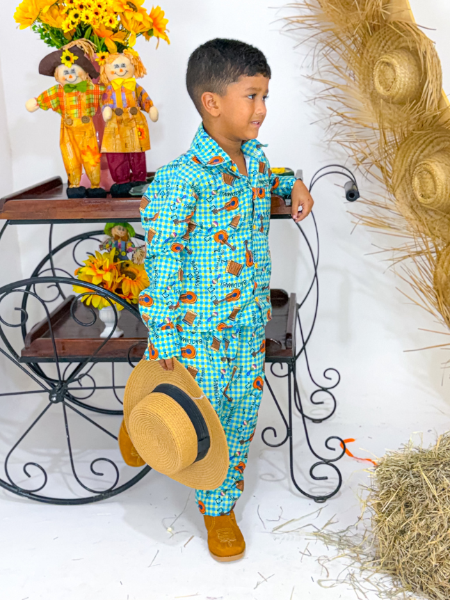 O conjunto masculino infantil junino é perfeito para compor looks tradicionais com muito charme e conforto. O modelo traz um visual típico das festas juninas, com acabamento cuidadoso e detalhes que valorizam a proposta temática.