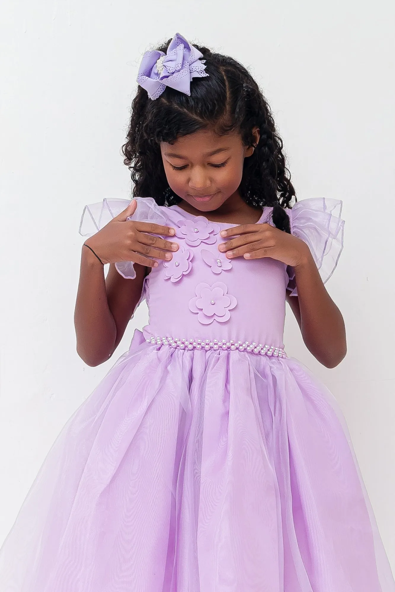 O vestido infantil “Bufante” é uma peça sofisticada para festas e eventos especiais. Seu busto estruturado traz detalhes delicados em aplicações, enquanto as mangas volumosas em tecido translúcido criam um efeito impactante e elegante. A cintura é realçada por um acabamento detalhado, e a saia ampla, com camadas leves, proporciona movimento e fluidez ao visual. Esse modelo é ideal para quem busca um look marcante e encantador.